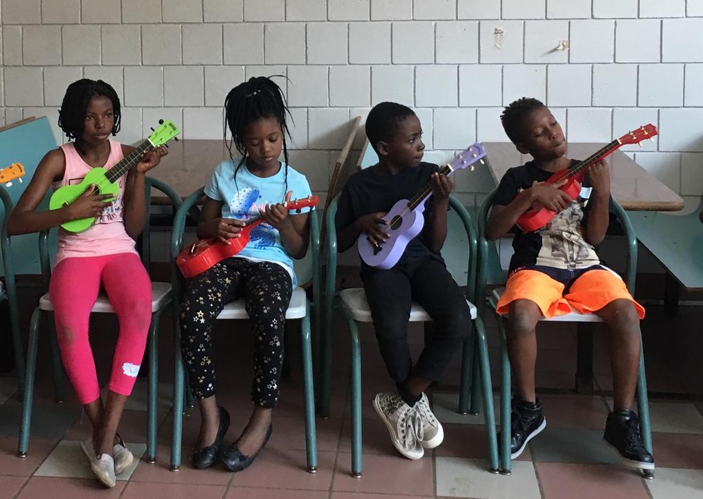 Students who will be attending Portland schools this coming year learn the ukulele as part of a program designed for access to education for those living in Portland’s Family Shelter.