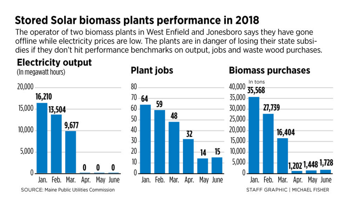 Stored Solar’s failure to run this spring and summer was tempered somewhat last week by news concerning two biomass plants in Aroostook County owned by ReEnergy Holdings.