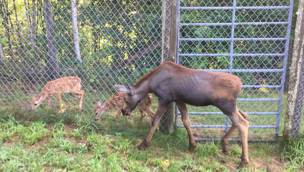 The plan is to move the moose calf in with the park’s three adult moose sometime in the fall. She will start off sharing space only with the 9-year-old cow, Annie, because the two males can be aggressive during the fall mating season and need to be separated.