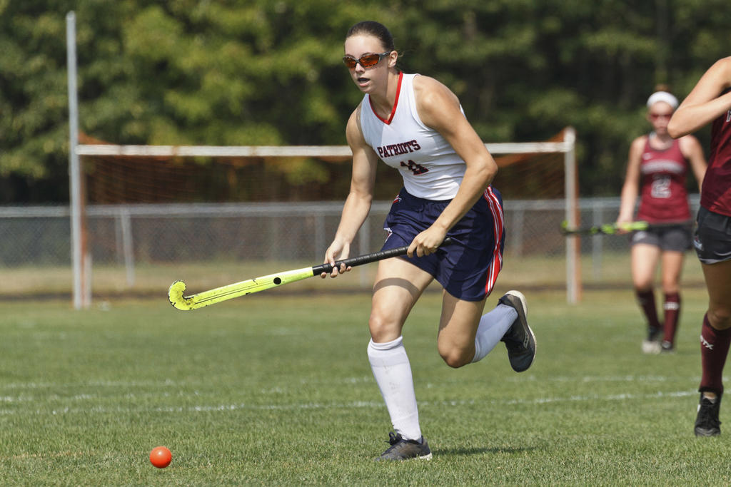 Lady Patriot Maddie Post propels the ball forward in a bout last fall.