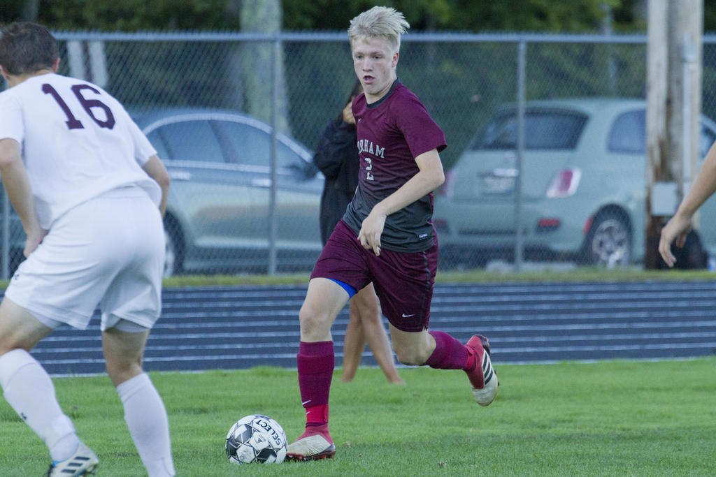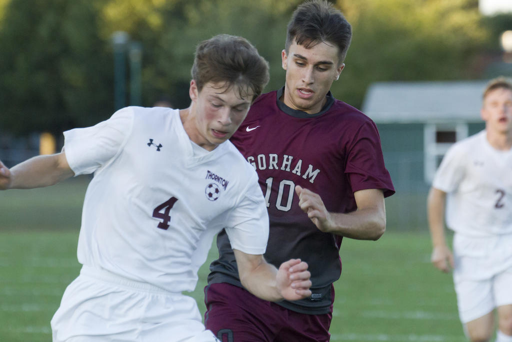 GORHAM—Four different Rams – Grant Nadeau, Ryan Farr, Andrew Rent and Colby Christakis – scored a goal each as Gorham charged past visiting Thornton on Thursday night, Sept. 13. For their part, the Trojans never found a way onto the board.