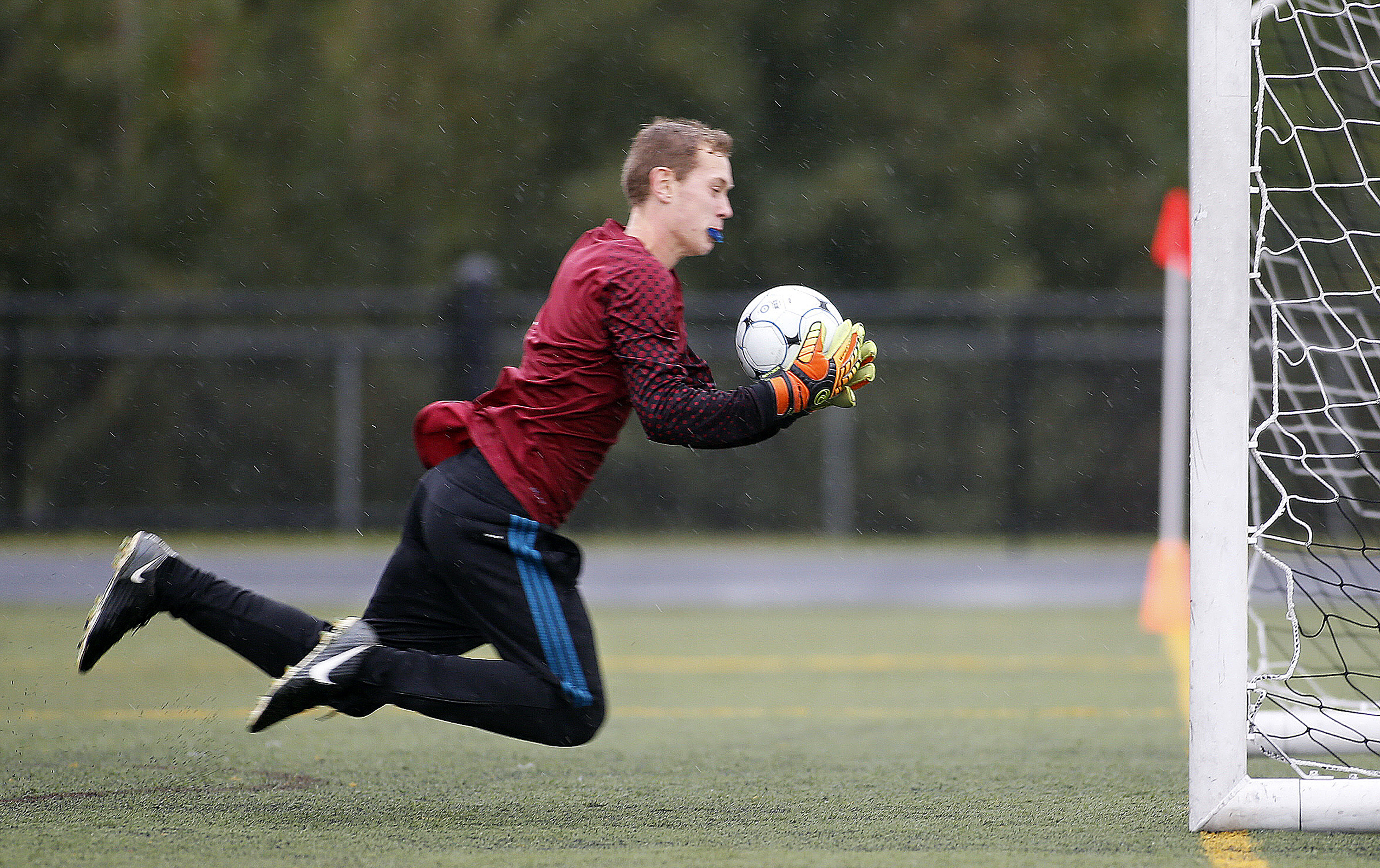 Kennebunk did have one final chance to even the match at the end when the officials put 10 seconds on the clock after Scarborough didn’t get the ball back in a timely fashion for a Rams free kick. Michael Walsh served the ball into the box and Tristan Wirth got a shot off that hit the post with a few seconds remaining.