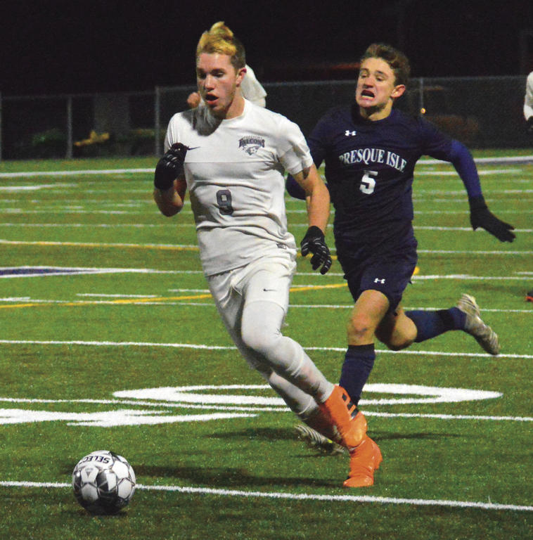 Presque Isle’s first good look came in the 21st minute, but Caron’s left-footed bid rolled just wide of the far post.