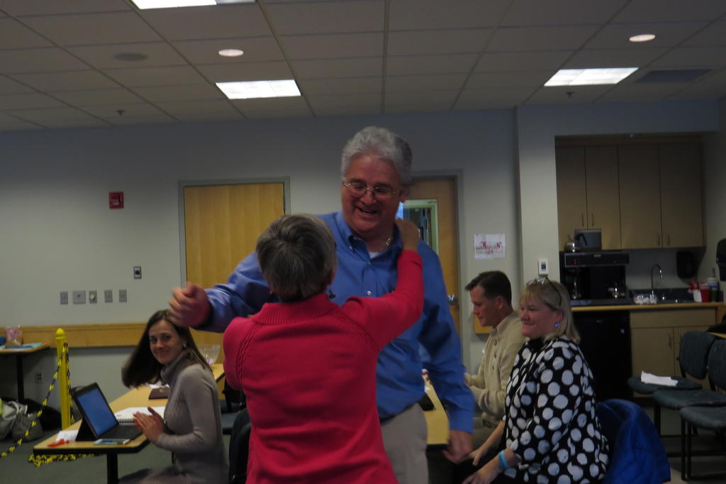 Jim Violette congratulates Beth Schultz after the Ward 5 School Commitee recount. The recount swung three votes in Schultz’s favor, while Violette lost a vote from what was reported Election Night.