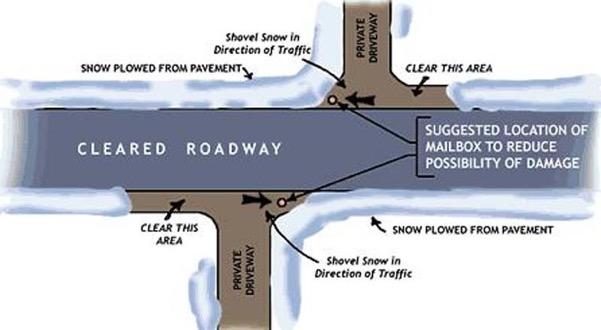 The town advises that residents with driveways shovel snow in the direction of traffic and make a pocket next to the driveway. Plows going by will drop their snow into that pocket with the intent of depositing only a bare minimum into the driveway opening.