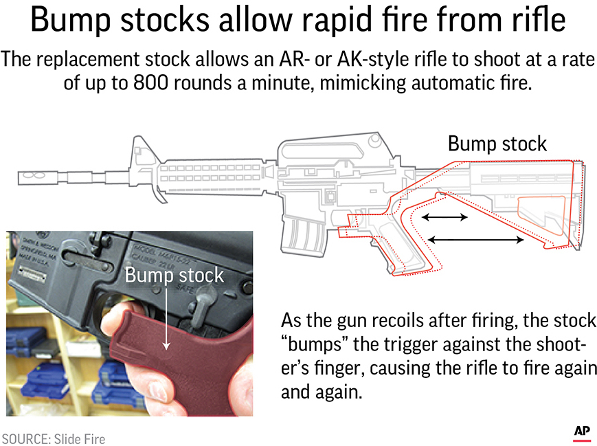 Bump stocks became a focal point of the gun control debate after they were used in October 2017 when a man opened fire from his Las Vegas hotel suite into a crowd at a country music concert, killing 58 people and injuring hundreds more.