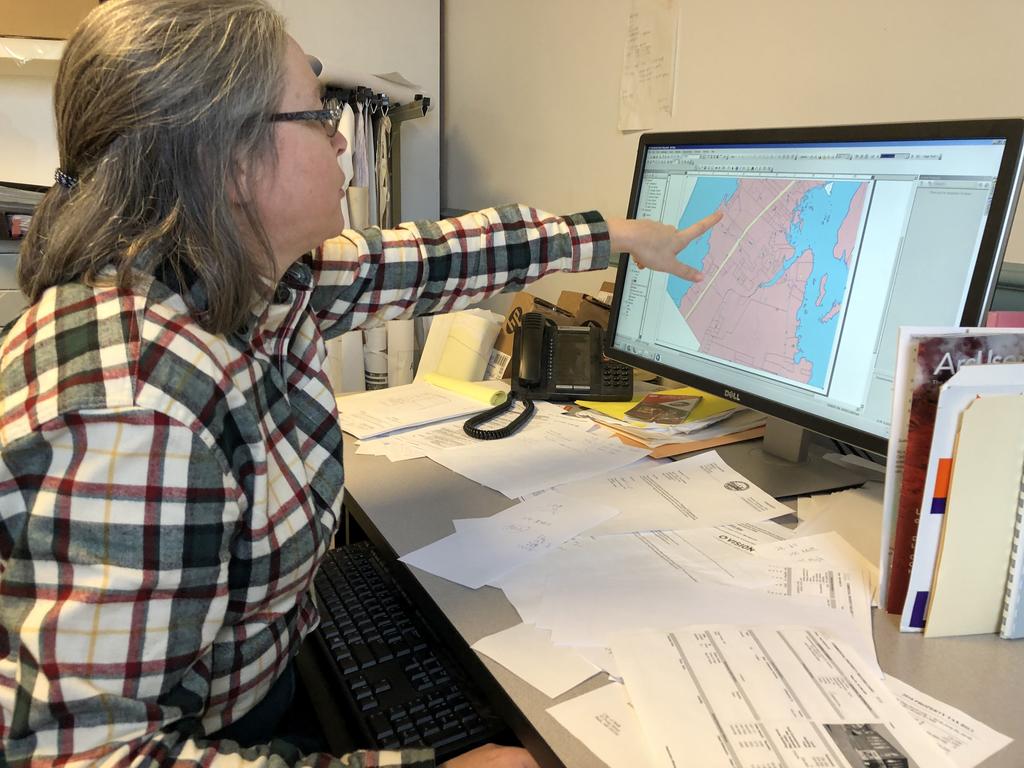 Brenda Cummings, who will be discussing Bath’s lost cemeteries with her husband and fellow Bath Historical Society member Tim Richter, shows the locations of some of the city’s ancient burial grounds.