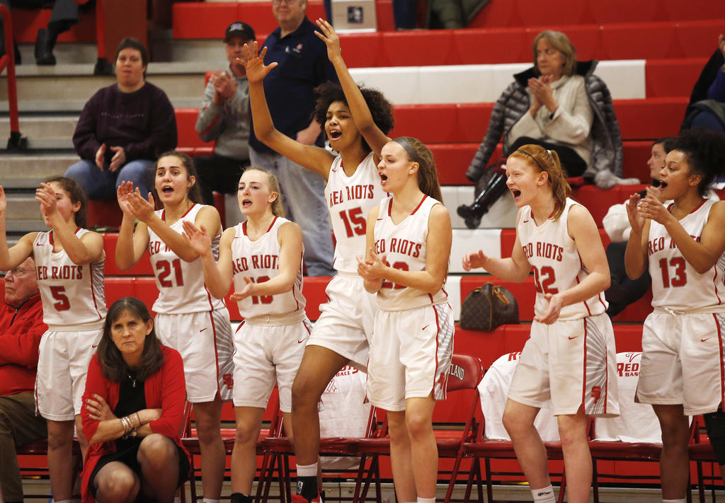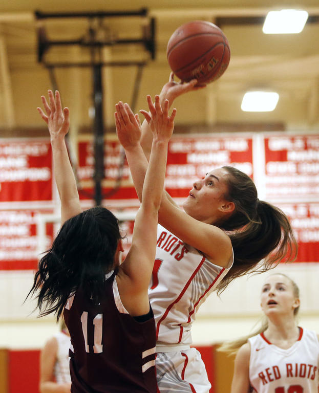 With 55.1 seconds remaining, Maggie Whitmore made two foul shots for the Red Riots’ final points and with 16.3 seconds showing, a finger roll from Perry accounted for the 46-38 final score.