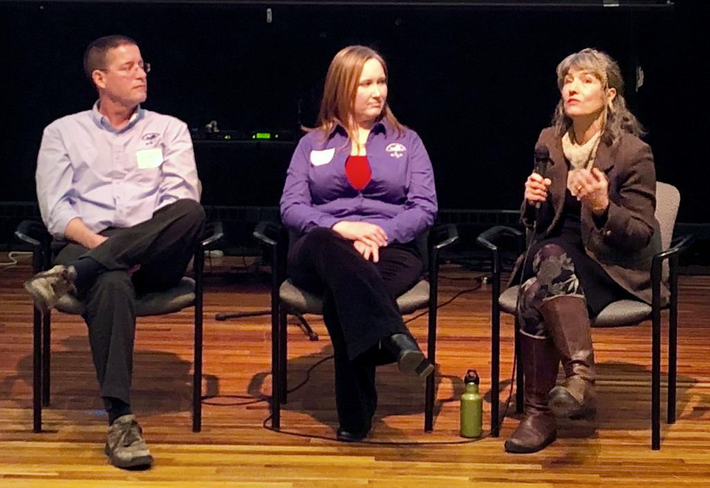 From left, Paul Hunt, Kirsten Ness and Roberta Hill participate in a roundtable discussion at the symposium Feb. 2.