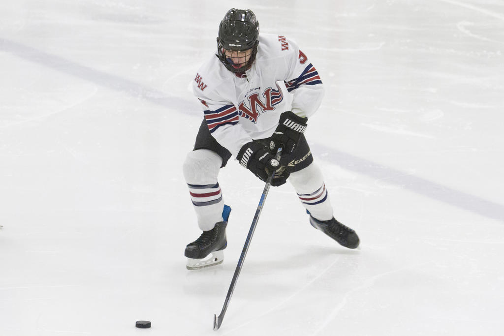 Jordan Cantz drives toward the net on the attack for Windham/Westbrook.