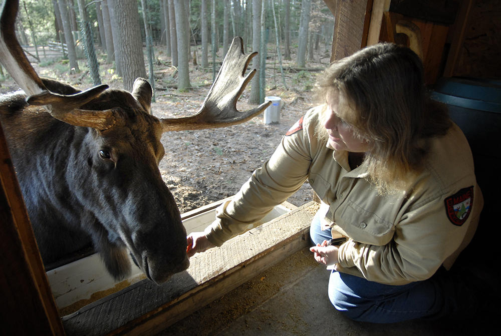 Pam Richardson feeds George at the Maine Wildlife Park in 2006.