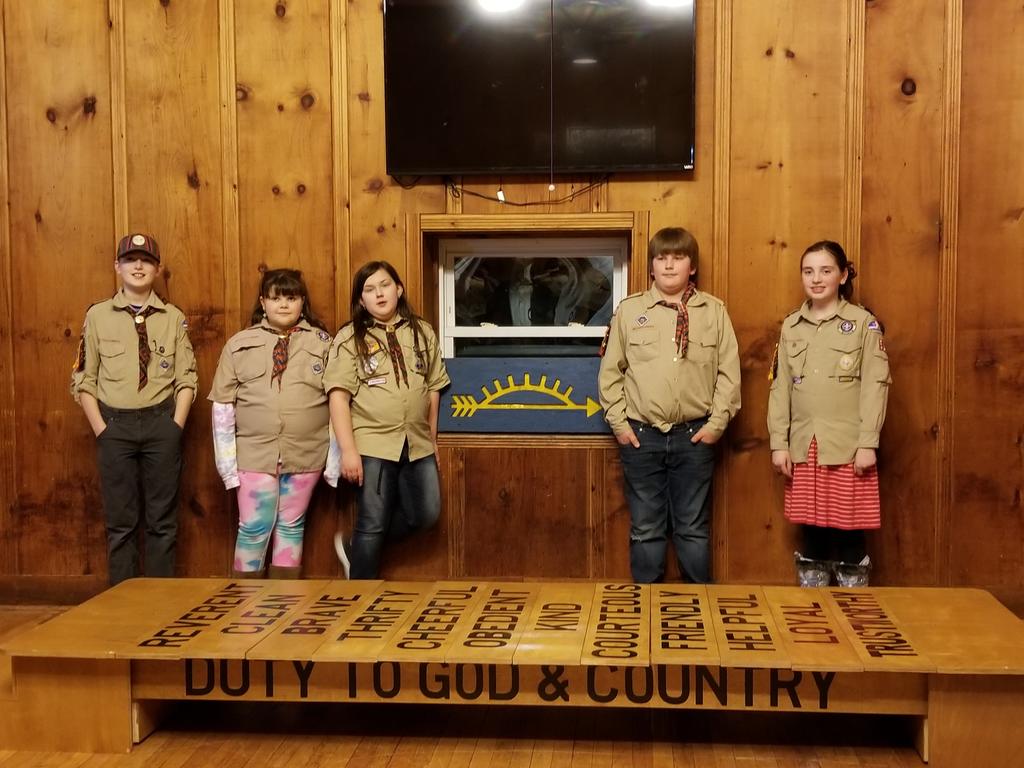 Maine’s first Scouts BSA Girl troop crossed over from Cub Scouts into Scouts BSA in a ceremony at Camp Hinds Feb. 1. The newly established Troop 851 is looking forward to exciting adventures ahead as they learn leadership and survival skills and take on the task of earning their Eagle Scout awards.
