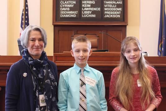Bath Middle School students Arianna Hodsdon and Gage Suitter served as honorary pages in the Maine Senate on Feb. 21, as the guests of Sen. Eloise Vitelli, D-Arrowsic.
