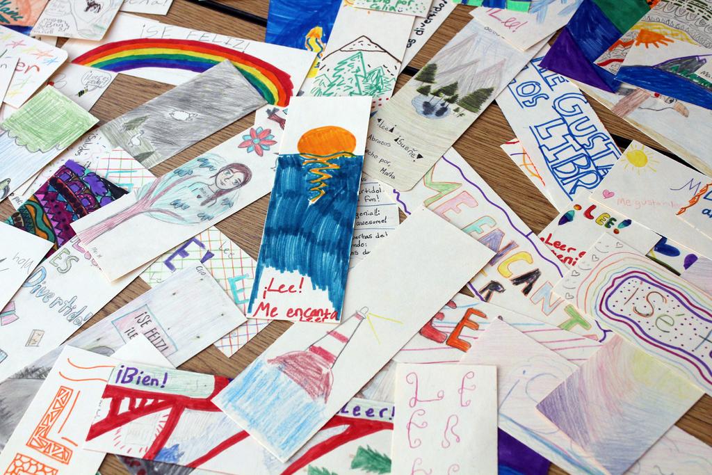 Bookmarks created by Cape Elizabeth Middle School students for Peace Corps volunteer Emma Inhorn’s students in Panama.