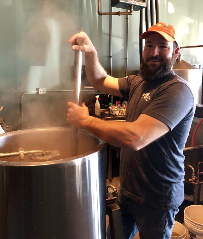 Birchwood Brewing co-owner Andrew Sanborn mixes a mash for one of Birchwood’s IPAs.
