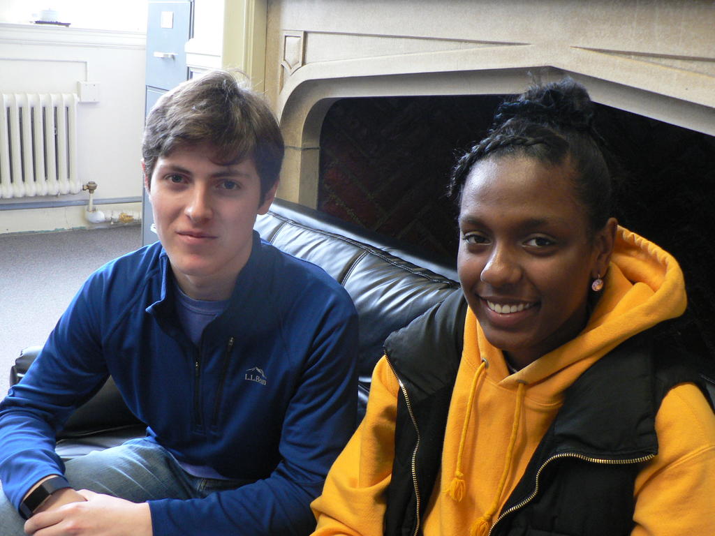 Aidan Reid, left, and Selam Desta are juniors in a human rights class at Deering High School in Portland, who are examining the conflict over immigration at the country’s southern border.