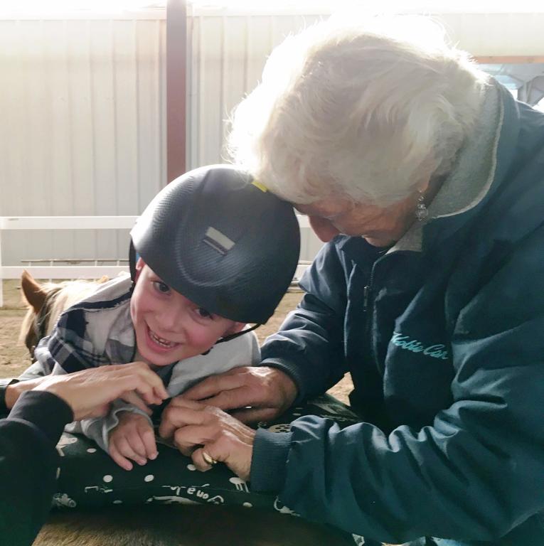 Volunteer Pat Niboli assists rider Trey Gilpatrick at Riding to the Top Therapeutic Riding Center. Niboli was named to the Maine Volunteer Roll of Honor.