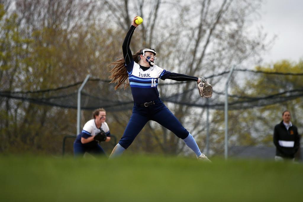 York junior ace Abby Orso throws a strike. Orso earned the win, allowing three hits in a complete game effort while fanning 11.