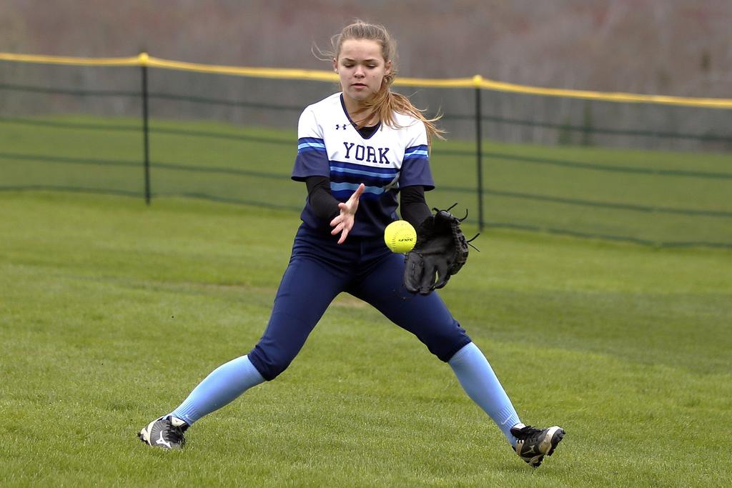 York rightfielder Ellie Bourgoine fields a hit.