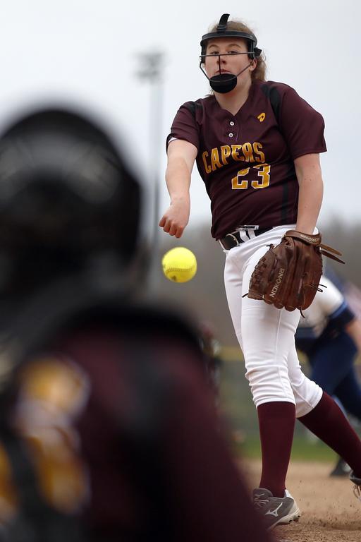 Cape Elizabeth sophomore Anna Cornell delivers a pitch during the Capers’ 3-0 loss to York Monday.