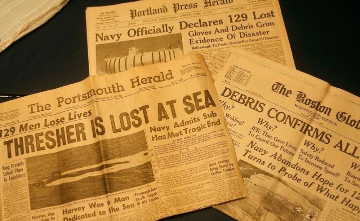 Nearly 130 lives were lost April 10, 1963, when the Thresher sank 8,000 feet to the seafloor after conducting deep-dive exercises 220 miles off Cape Cod.