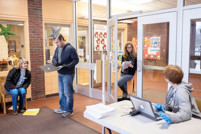 “Kids are logging in,” said Nancy Sirois, a math coach at Riverton, who said efforts to connect every student at the school with technology for at-home learning are going well.