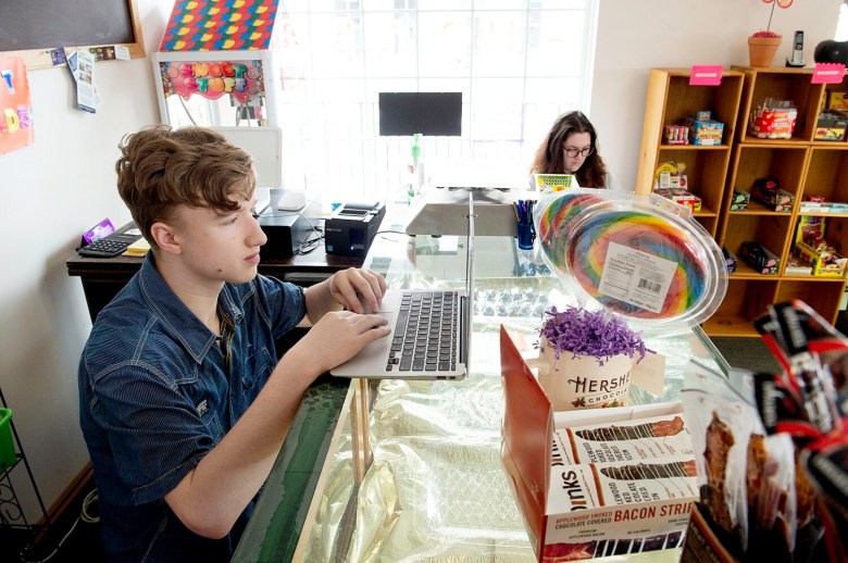 In the Franklin County town of Strong, Tammy Paradis doesn’t have broadband at her home. So she has resorted to taking her children to her downtown Farmington business, a candy store that is currently closed, so they can access a faster connection.