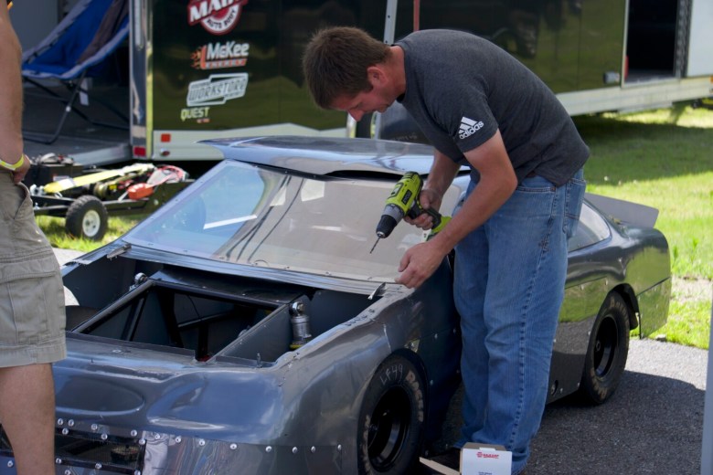 Cayleigh Rose, a 10-year-old racer in the Jr. Sportsman division, was also getting her car worked on. Rose has only been racing for ‘Two or three years,’ but is much more comfortable behind the wheel now.