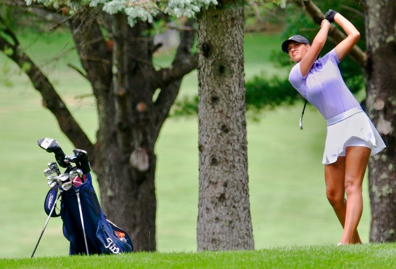Haylock and Plourde both found the left rough with their drives, and while Plourde’s approach found the back of the green, Haylock’s settled on the apron in front. Haylock pulled out her 56-degree wedge and hit a chip that started high, bounced twice, and rolled in.