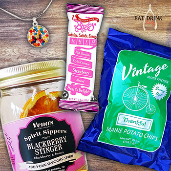 Open in case of emergency. Or send a Secret Stash as the ultimate stocking stuffer. This box includes: three individual-sized bags of Vintage Maine Kitchen potato chips in Ordinary, Cookout & Thankful; a Vena’s Fizz House infusion kit; three Bixby bars, Heart’s Delight, Whippersnapper & Gingered Up and made by IlluminatedME, a Sprinkles necklace to add touch of fun to every day. A $64 value
