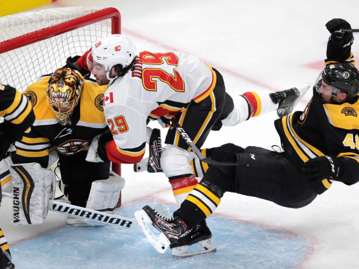 Sean Monahan scores twice in a span of 1:12 to give Calgary the lead for good.