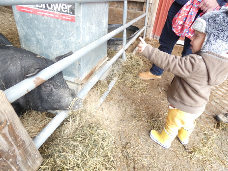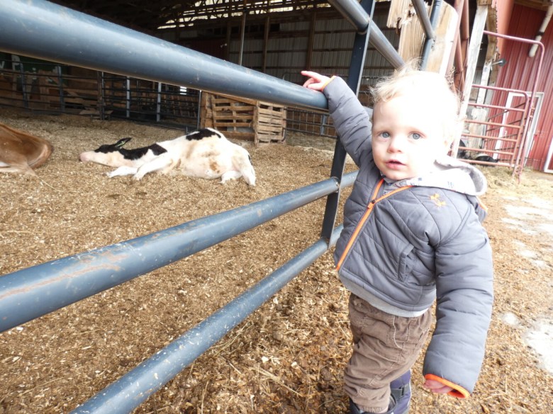 It is lambing time so the children visiting Saturday were able to see two new lambs, who spent most of the time snuggled up in a corner snoozing. There were also baby goats and calves who spent much of the damp lazy day sleeping.