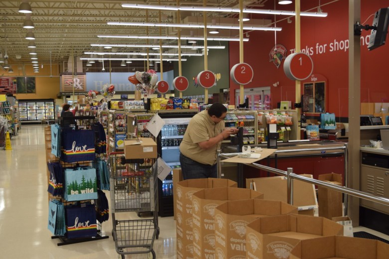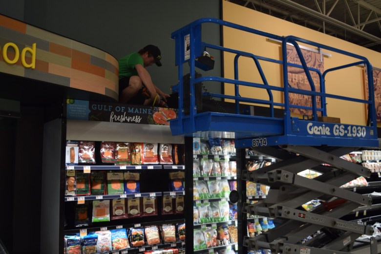 Hannaford employees and contractors were busy stocking shelves and assembling shelves Tuesday at the supermarket’s newest location in the Cooks Corner Mall in Brunswick, slated to open 7 a.m. Saturday.