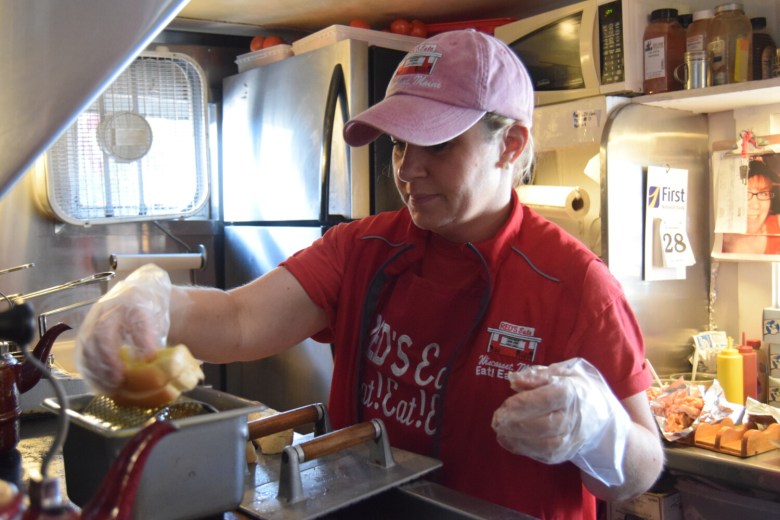 I make it about a half-step over the threshold but quickly run out of room because five Red’s Eats employees already are crammed into the tight space. The shack smells overwhelmingly of warm, melted butter and fry oil — the kind that evokes memories of beach boardwalks and summer baseball games. Elton John’s “Rocket Man” is just ending on the radio and the orchestral overture of Diana Ross’ “Ain’t No Mountain High Enough” starts to bleed through the speakers. (I was later told the eatery only plays music from the 1970s.)