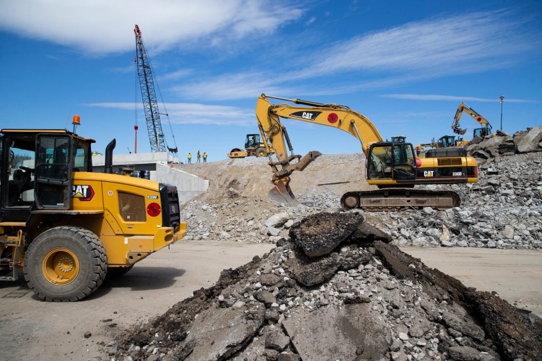 “Everything’s going smoothly,” Merrill said Sunday morning. “We’re on schedule. Both new bridge decks are now in place. Today they’re just working to tie them in, do some dirt work, and do some paving. That’ll continue into the overnight hours.”