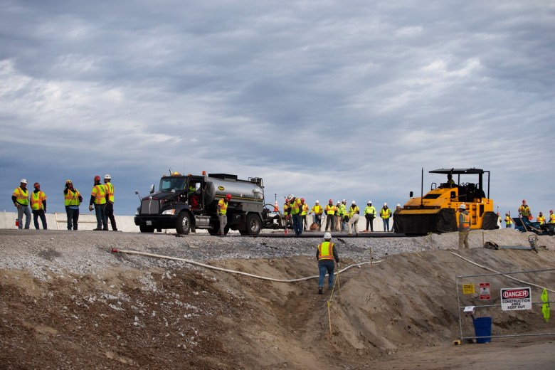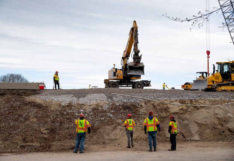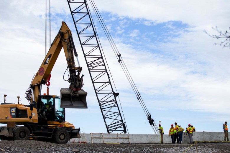 Back at the construction site Sunday afternoon, Mark Rajotte, who lives in the neighborhood just north of the bridge, was watching the progress with a small crowd. He said he was really happy with the project. He said he had slept fine through the round-the-clock construction, and the traffic disruption did not bother him too much.