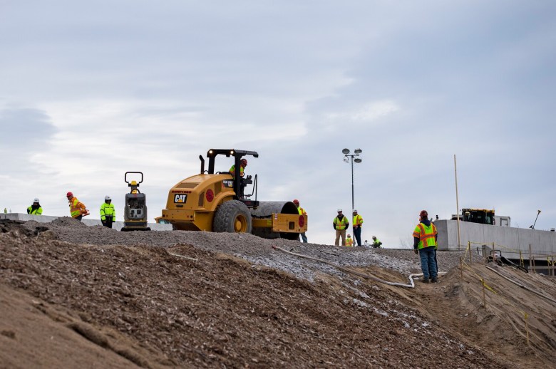 Construction workers were putting in 12-hour shifts to get the project done on time, and there were about 90 workers on site each shift, Merrill said.