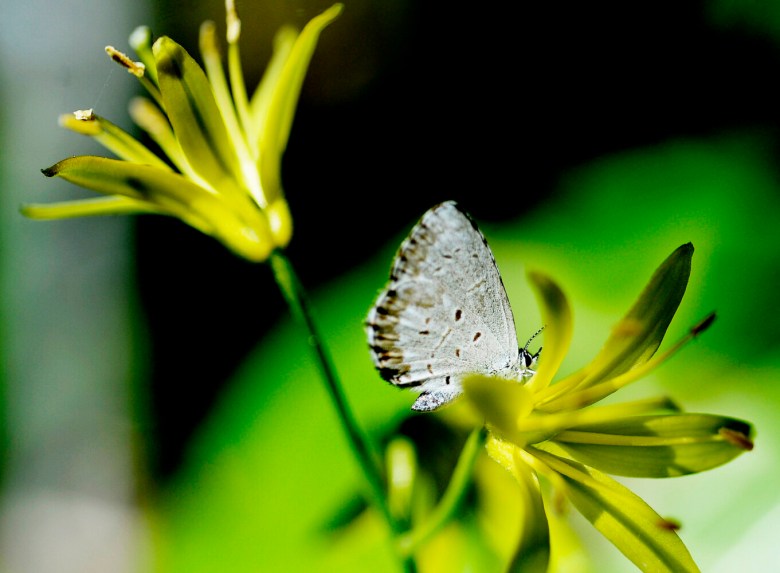 BANGOR, ME - MAY 26: An azure butterfly pollinates a yellow clintonia spotted during a flower walk at Walden Park Preserve in Bangor Thursday, May 26, 2016. (Photo by Shawn Patrick Ouellette/Staff Photographer)
