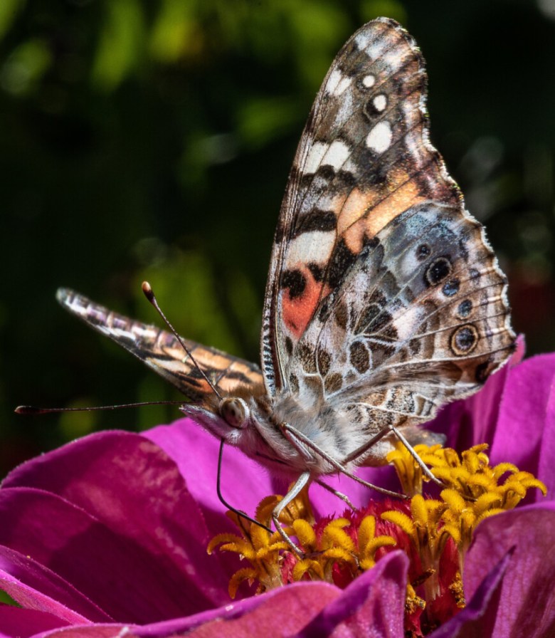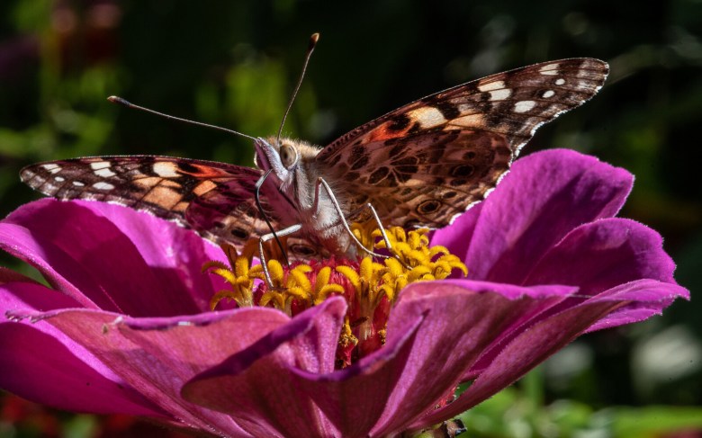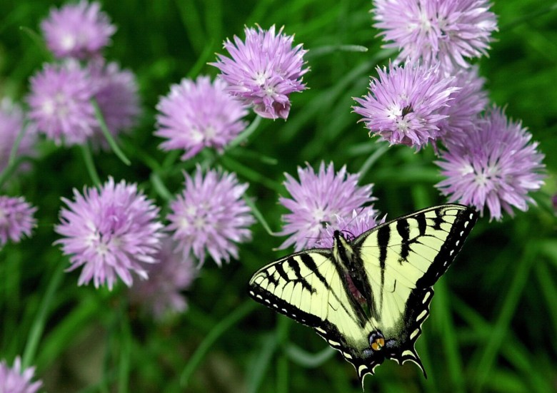 DROPPING IN: A Swallowtail butterfly feeds on nectar Thursday in Hallowell. The colorful insects also spread pollen collected from flowers, helping seed a variety of different species.