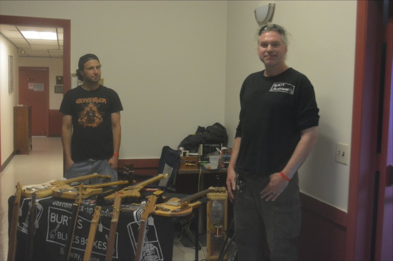 Builder and festival vendor Burt Philbrook of Norway, owner of Burt’s Blues Boxes, said as a metal head, he likes to give his cigar box guitars more of a heavy metal sound.