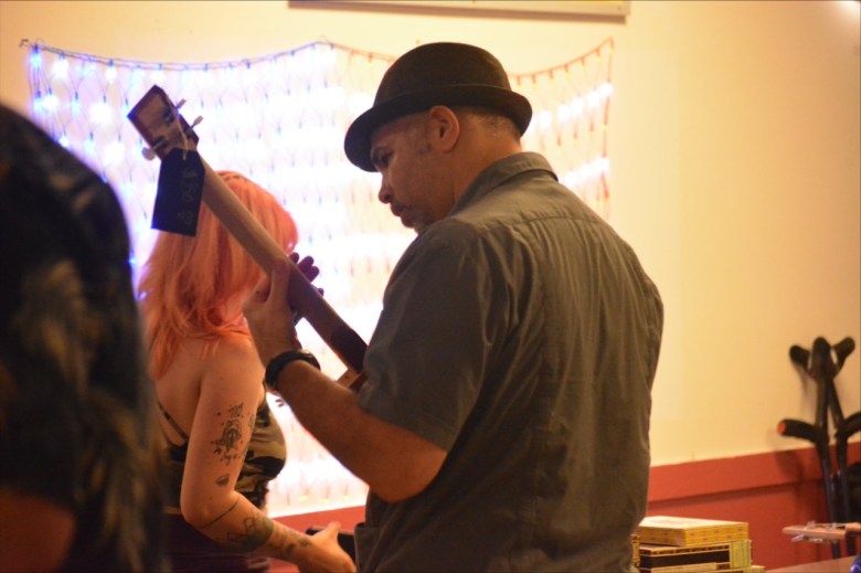 Richards designed all the cigar box guitars played at Saturday’s show, and some musicians also played traditional guitars between CBG songs. Richards’ guitars were raffled off after each set. Audience members who spoke with the American Journal said they came for the unique blend of arts, craftwork and music.