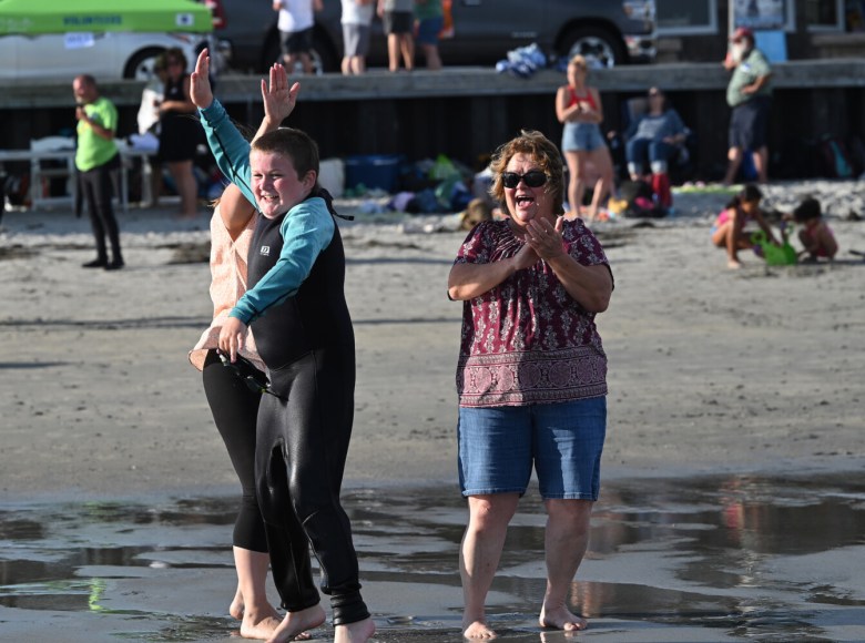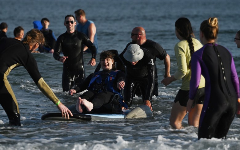 Tuesday’s gathering broke attendance records with about 250 surfers and nearly 400 volunteers hitting the beach, said Nanci Boutet, founder and executive director of Special Surfers. “The volunteers want to come every year, they move heaven and earth to come again,” Boutet said.