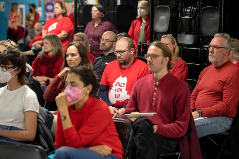 “I have a 7-year-old in Portland public schools and I think it’s really important for parents to show their solidarity with school teachers and staff, especially the lower-paid ones,” Alison Mann said during a break in the board meeting. “These are the people working so hard for our kids, our community and our future.”