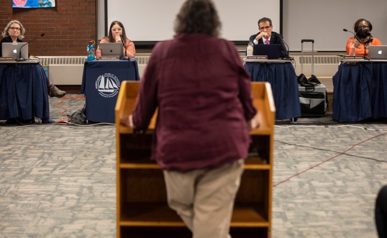 When the public comment period ended Sarah Lentz, who took over for Figdor as board chair Monday, apologized on behalf of the district and pledged to do better.