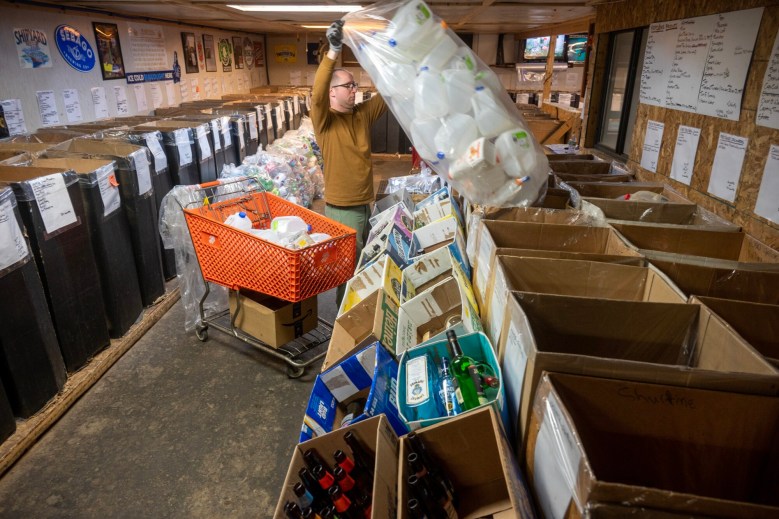On Thursdays, they post a closed sign, park their cars behind their building and cover the front window with cardboard, so they can get caught up on counting and sorting, particularly for organizations that bring in bottles by the bag or by the trailer-load. And even that’s not enough to keep pace with demand; three times in the second half of 2022, they shut down entirely for a week to get caught up.
