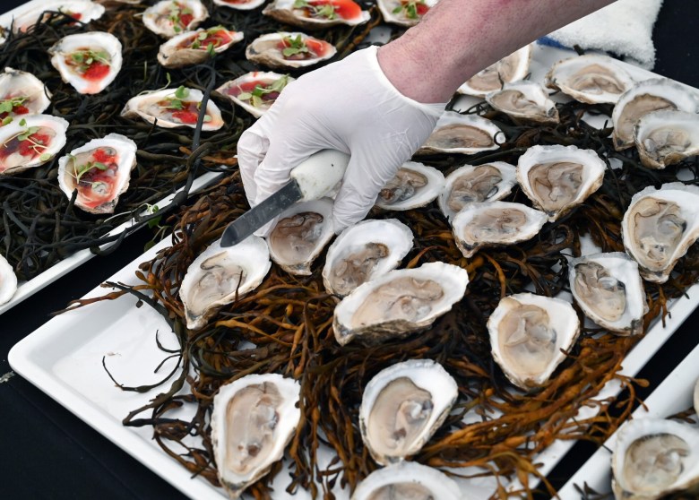 Nearby, people lined up for an oyster on a shell. In another line, people were handed a taste of lobster bisque from Luke’s Lobster.