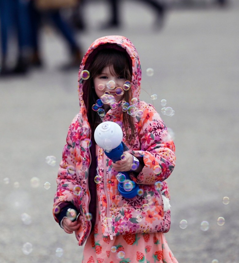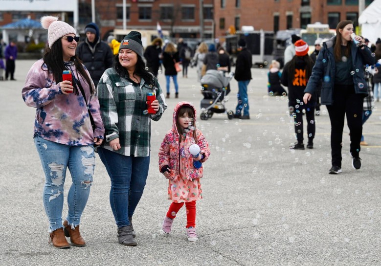 Kristine Bernier of Waterboro and her friend Amanda Whittier of Sanford came with Bernier’s daughter, Paisley, 4. The girl was making bubbles with her new bubble wand. Bernier said she approves of Carnaval Maine and its new location.