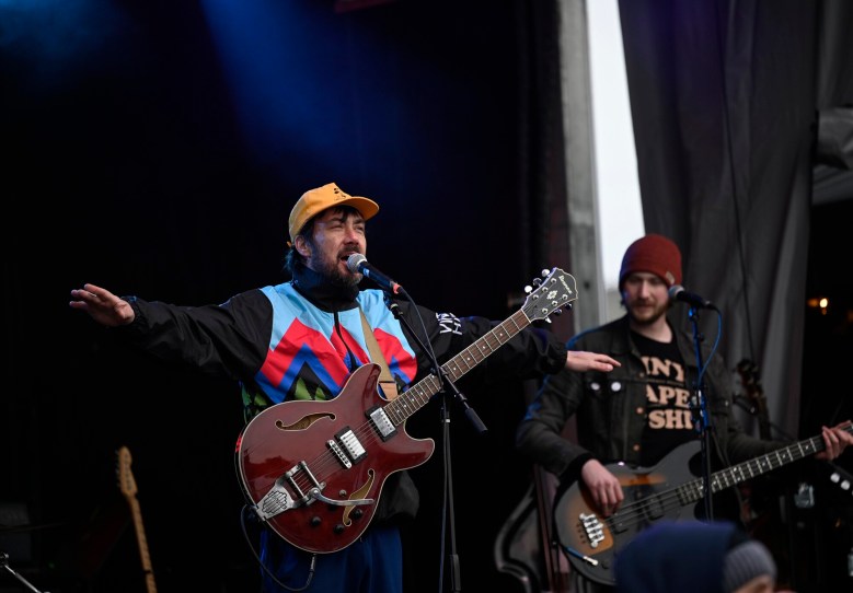 The outside stage was located at one end of DiMillo’s parking lot while a huge, blow-up igloo stood at the other. Hundreds of people were inside the heated igloo Saturday at a “Bites & Brews” session, where ticket buyers were served six pairings of appetizers and alcoholic drinks.