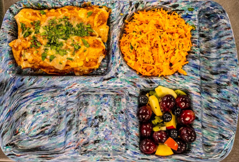 On one side, the mother-son team from Lewiston made cheesy enchiladas paired with fruit salad, and carrot and jícama slaw. The other mother-son duo from Skowhegan offered pan-seared chicken over carrot puree with chicken-flavored rice, vegetable salad, fruit salad with homemade dip and oatmeal-carrot cookies.