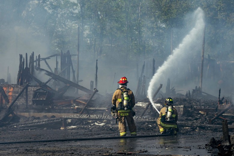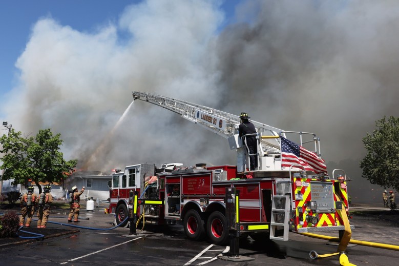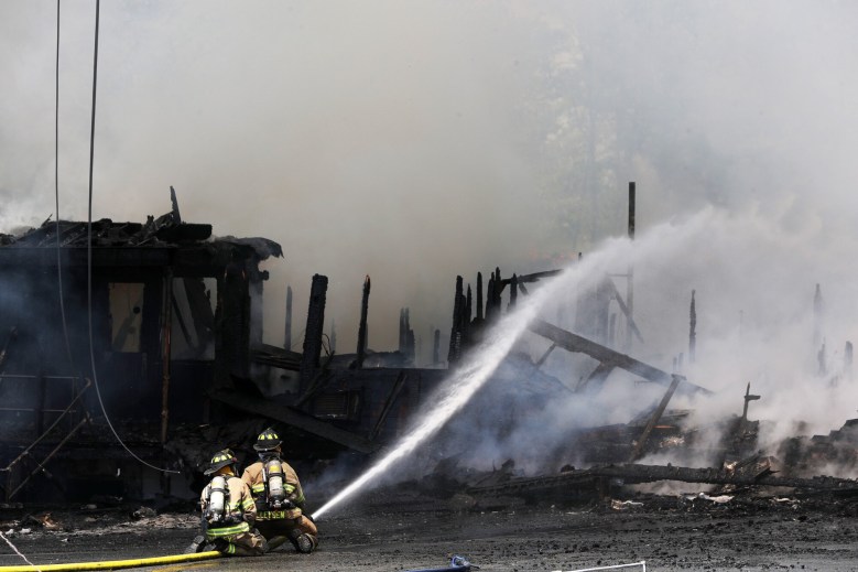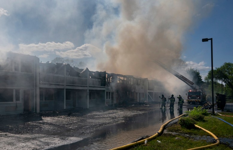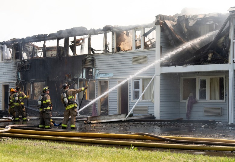 O’Brien said firefighters entered the burning building without water lines to try to reach a second-floor room to search for one or two people who might have been trapped, but heat and flames drove them back when they were about two rooms away.